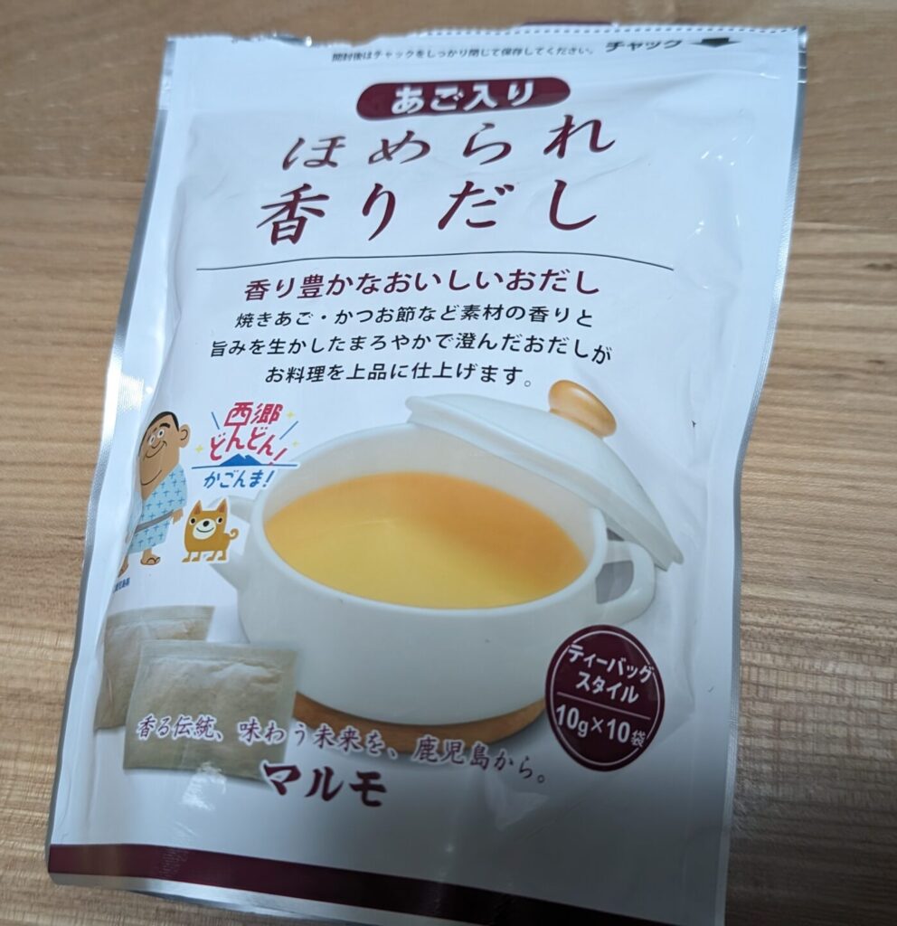 | あご入り ほめられ香りだし | 食塩、糖類(砂糖、ぶどう糖)、風味原料(焼きあご、さば武士、かつお節、昆布、しいたけ、いわし節)、しょう油加工品、調味長(アミノ酸等) |